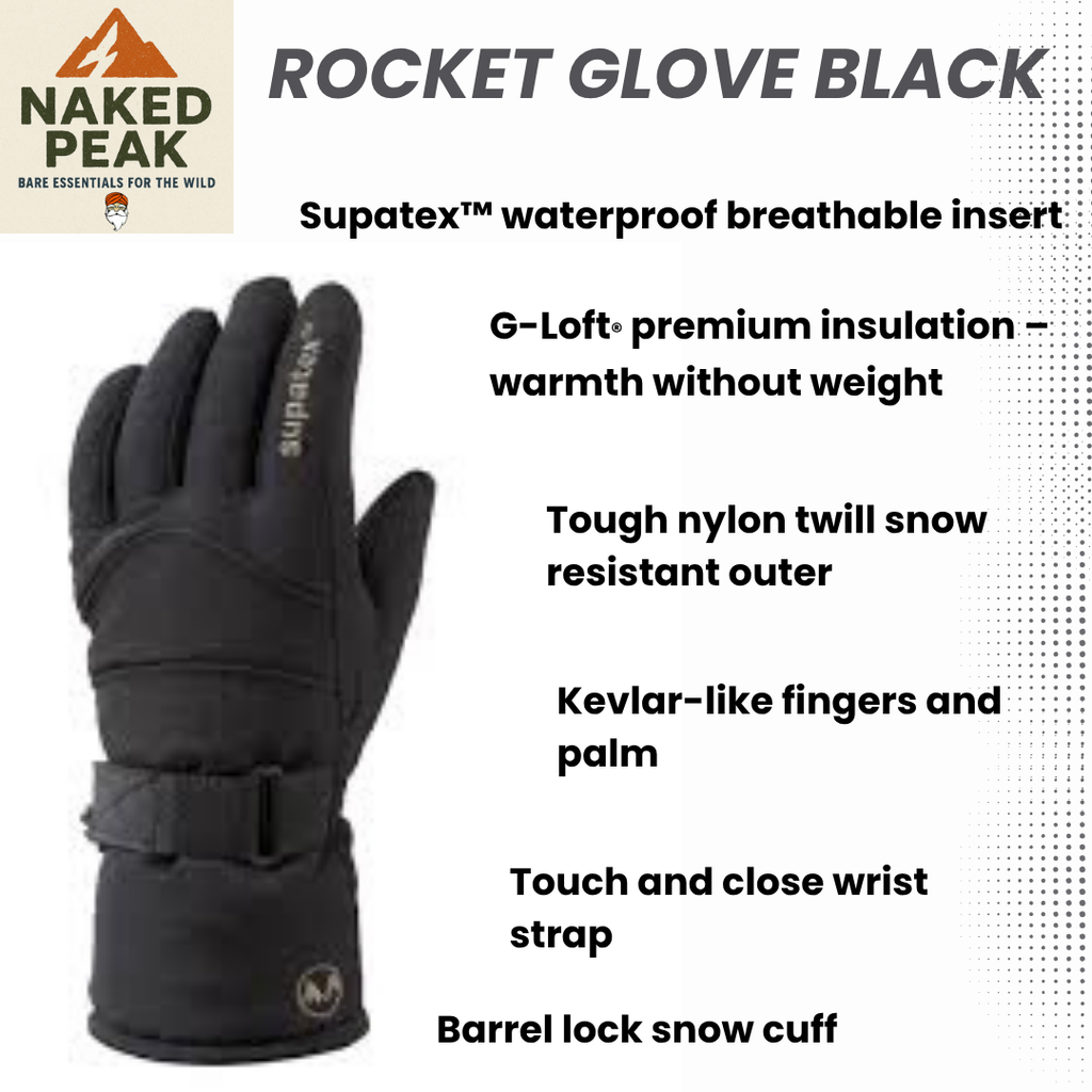 Strong but still flexible, the adult Rocket glove is an ideal starter glove for skiing, also great for use in the UK when the beast from the east arrives! The Rocket gloves include a breathable waterproof insert and lightweight G-Loft® premium insulation, helping to keep hands warm and dry whatever the weather.
